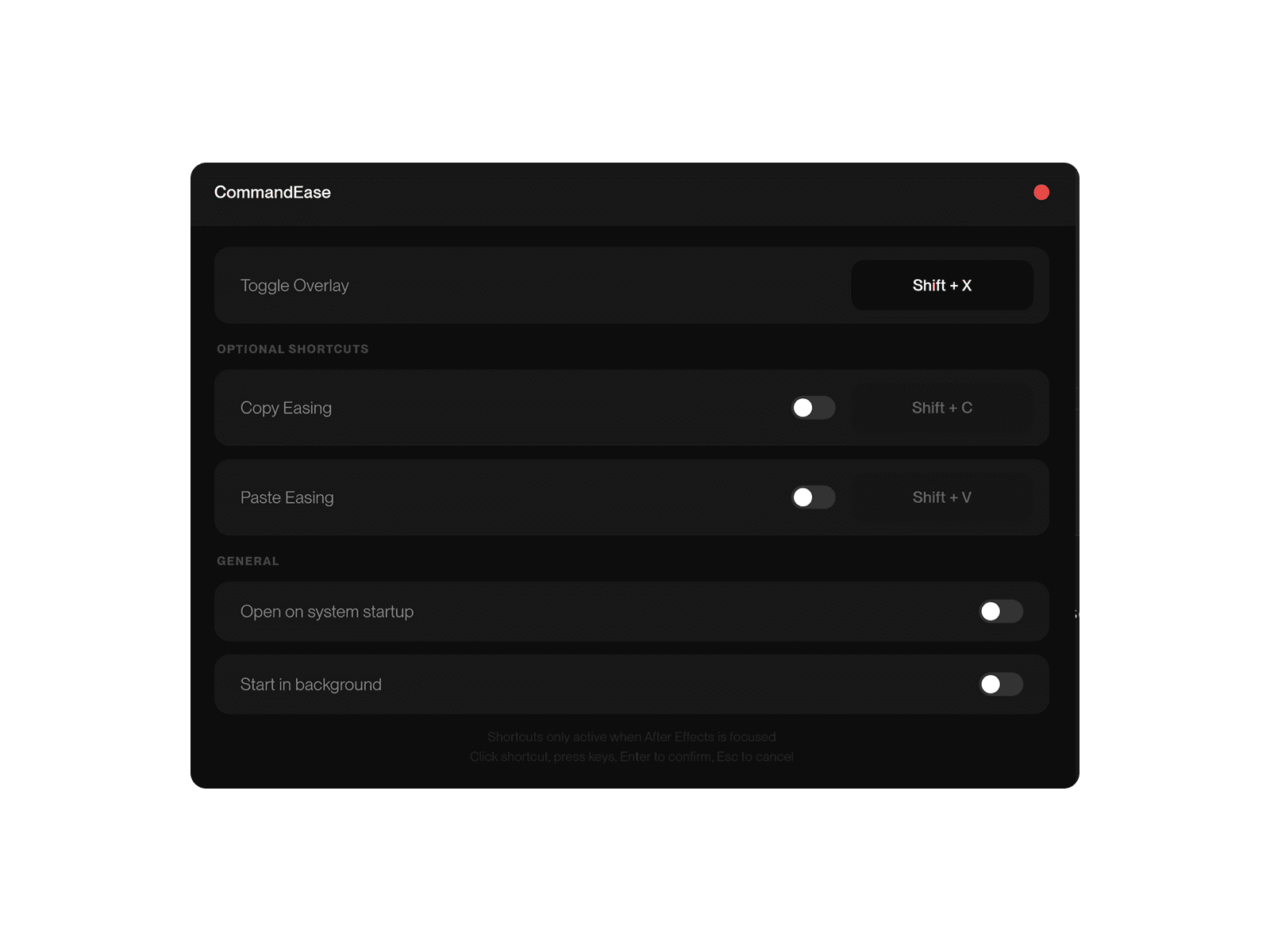 A definitive solution for handling easing inside Adobe After Effects. This app provides a full featured, command-style menu that makes applying and managing easing quick and straightforward. It includes tools for copying and pasting easing, a complete scale preset library, and an integrated ease graph editor for precise control. Everything you need to create smooth, professional motion is organized in one efficient and easy to use system.